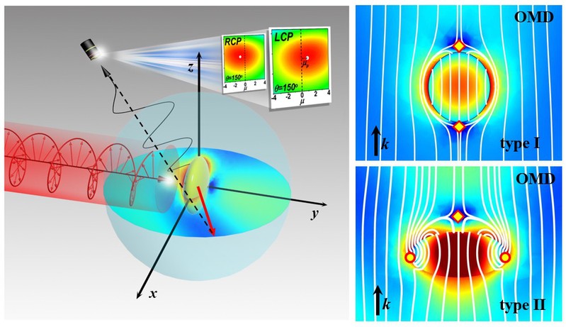 近期,高东梁/高雷课题组与澳大利亚新南威尔士大学的Andrey E. Miroshnichenko教授合作,解决了长期以来纳米颗粒的自旋霍尔效应弱且散射效率低的问题,对具有对偶对称性纳米颗粒的几何形态进行了探索和优化,使得自旋霍尔位移和散射效率同时增强。还在纳米颗粒近场轨道角动量分布上发现了一种新的模式,为光与物质相互作用的机制提供了新的解释。研究成果题目为“Wavelength-Scale Spin Hall Shift of Light with Morphology-Enhanced Scattering Efficiency from Nanoparticles”发表在《Laser & Photonics Reviews》上。